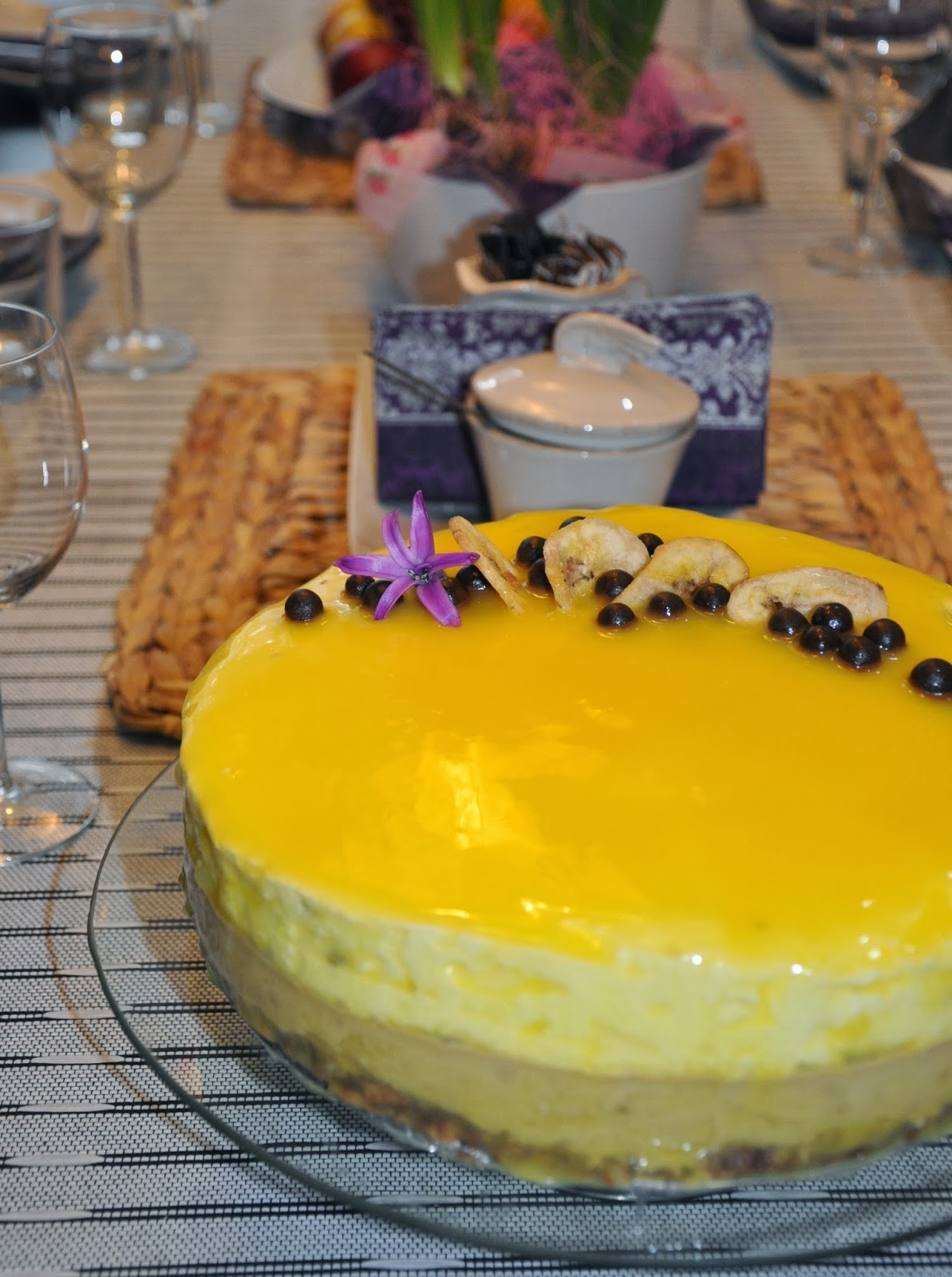 Tort wykonany na specjalne życzenie wielkiej miłośniczki bananów, mojej mamy. Uwielbia te owoce i potrafi je jeść w każdej ilości, stąd też pomysł na podanie ich w innej niż zazwyczaj postaci. Bardzo lekki i słoneczny tort, który można bez wyrzutów sumienie zjeść w znacznej ilości. W końcu to głównie owoce, jogurt i serek, prawie zero kalorii ;-) ale za to ile uśmiechu na twarzy :-) Polecam nie tylko w swoim imieniu!